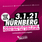 Save The Date! Für den 3.01.2021 mobilisiert Querdenken 911 zu einer „Bundesweiten Großdemonstration“ nach Nürnberg. Die Vergangenheit hat gezeigt, dass auch ein Verbot der Veranstaltung die Querdenker:innen und unter ihnen auch zahlreiche Neonazis nicht davon abhalten wird, nach Nürnberg zu kommen. Für uns ist deshalb klar, wir werden Antisemit:innen und anderen … [Weiterlesen...]
