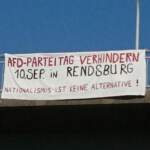 Als kleinen Beitrag für die Mobilisierung gegen den AfD-Landesparteitag am 10. und 11. September 2016 in Rendsburg und als Teil der bundesweiten Kampagne "Nationalismus ist keine Alternative" haben wir heute ein Transpi an einer Autobahnbrücke in Richtung Kiel aufgehängt. … [Weiterlesen...]