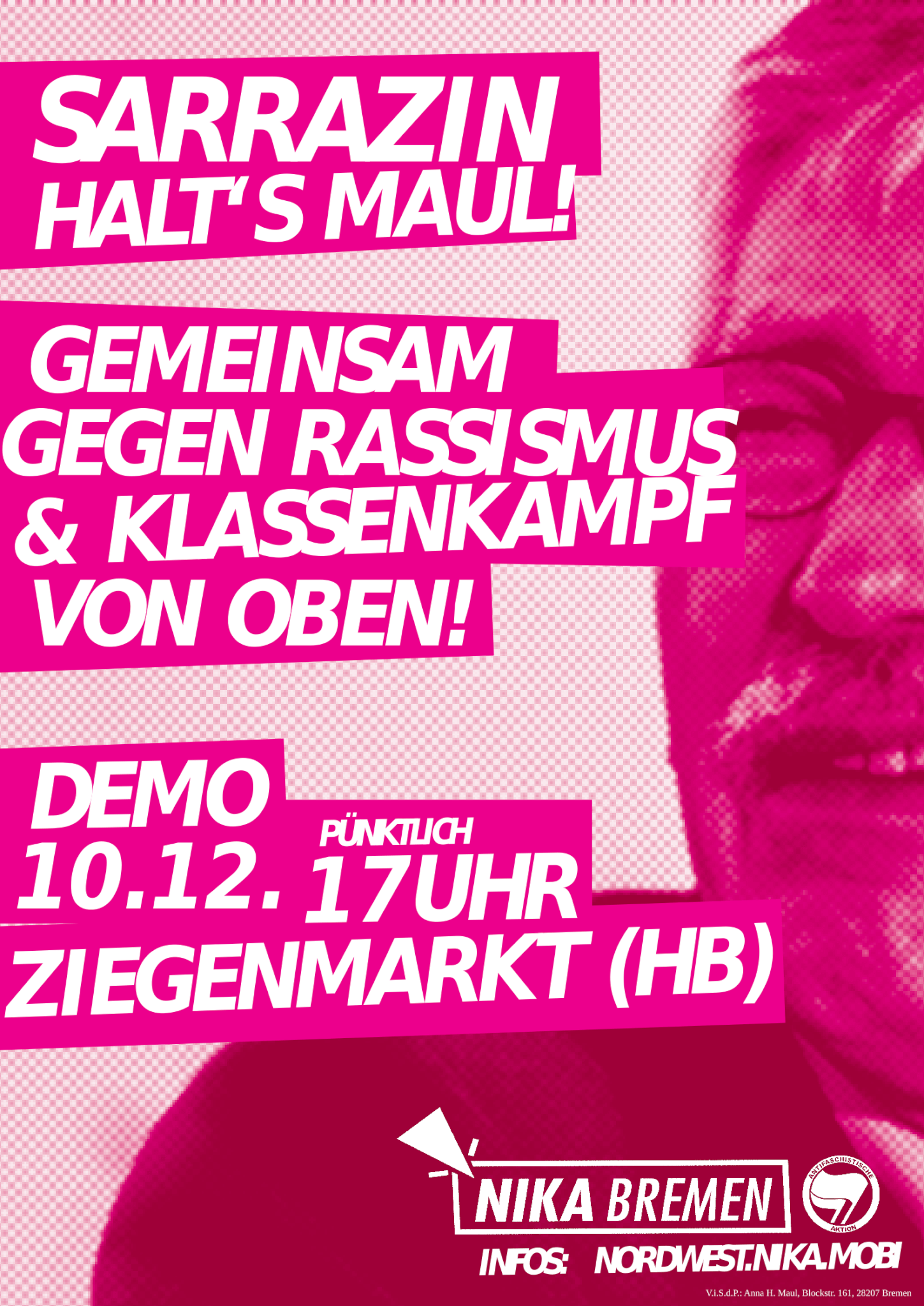 10.12.2019 // 17 Uhr Ziegenmarkt (pünktlich) // Antifademo gegen Sarrazin & Havanna Lounge
