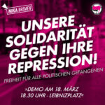 18.03.21 Unsere Solidarität gegen ihre Repression! Freiheit für alle politischen Gefangenen! 18:30 Uhr / Leibnizplatz / Bremen Aufruf: … [Weiterlesen...]