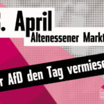 Der AfD den Tag vermiesen! Für den 8. April hat die AfD eine große Kundgebung in Essen angekündigt. Damit will die Partei den Wahlkampf für die nordrhein-westfälische Landtagswahl am 14. Mai eröffnen. Erwartet werden Parteigrößen wie Alexander Gauland und Marcus Pretzell. Genau wie am 22.04., wenn wir gegen AfD-Bundesparteitag in Köln auf die Straße gehen, heißt es der … [Weiterlesen...]