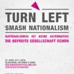 Turn Left - Smash Nationalism Nationalismus ist keine Alternative - Die befreite Gesellschaft schon! Am 22. und 23. April 2017 steht Köln ein Ereignis bevor, auf das es gut verzichten könnte: Der Bundesparteitag der AfD. Eingemietet hat sich die AfD im edlen Maritim-Hotel. Dieses kann in der parlamentarischen Stimme des Bündnisses von Mob und Elite nur eine Partei wie jede … [Weiterlesen...]