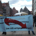 Für einen Wahlantritt zur niedersächsischen Kommunalwahl am 11. September 2016 muss die AfD zur Zeit Unterstützungsunterschriften sammeln. Dies wollte sie am 11. Juni dann auch am Platz Am Sande in Lüneburg tun. Allerdings bekam sie in den zwei Stunden ihrer Anwesenheit nur eine Handvoll Unterschriften zusammen. Diese stammten dann u.a. auch von Personen, die eine neonazistische Gesinnung offen zur Schau stellten. Bekleidungsstücke der Marke „Thor Steinar“ und Halsketten mit dem Thorshammer waren auch den AfD´lern sichtbar, die offensichtlich keine Hemmungen hatten, diese Unterschriften anzunehmen.