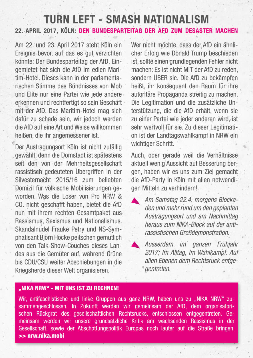 Im Nachgang des bundesweiten antifaschistischen und antirassistischen Treffens in Frankfurt am 31.1.2016 entsteht auf nationalismusistkeinealternative.net eine bundesweite Plattform um eine breite Mittmach-Kampagne gegen Rassismus und Abschottung.