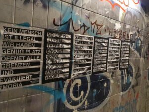 Im Rahmen der Aktionswoche für die Schließung und Evakuierung von Moria und aller Lager gab es einige Aktionen in München. So wurden Statements wie #leavenoonebehind, #evacuatemoria und #shutdowncapitalism in verschiedener Form im Stadtbild sichtbar gemacht.