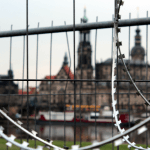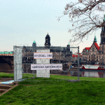 Heute, am 11.04.2016, fand inmitten des Zentrums Dresdens eine Anti-Grenz-Aktion von Aktivist*innen der Gruppe ‚grenzenlos‘ statt. Dabei wurde am Elbufer eine Kunstinstallation angebracht, die den bekannten Canaletto-Blick auf die Altstadtsilhouette an die neue außenpolitische Situation angepasst hat. Teil der Installation ist eine Tafel, mit der Aufschrift „Spiegel der Grenzen Andernorts“, welche mit Nato-Draht eingerahmt, in Kontext gesetzt wird. DIe Aktivist*innen der Gruppe ‚grenzenlos‘ wollen damit die Grenzen Europas aus der unbeachteten Ferne in die Innenstadt und damit in das Bewusstsein der Menschen bringen. Die Aktion ist Teil der bundesweiten Kampagne ‚Nationalismus ist keine Alternative‘. Unter dem Motto ‚Gegen die Festung Europa und ihre Fans‘ richtet sich die Kampagne gegen die völkische Koalition von AfD, Pegida, rassistischem Mob als auch gegen den Rassismus der Mitte und die Akteur*innen der Abschottung.