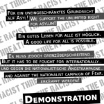 Die Zeichen stehen auf Sturm: Während im Bundestag das Asylpaket II durchgewinkt wurde und Deutsch-Europa sich mit dem Merkel-Erdogan-Deal weiter abschottet, fährt die AfD einen Wahlerfolg nach dem anderen ein. Wir wollen dagegen in die Offensive kommen und dem Wunsch nach Abschottung und mehr Autorität die Utopie einer befreiten Gesellschaft entgegensetzen. Ein Teilschritt auf … [Weiterlesen...]