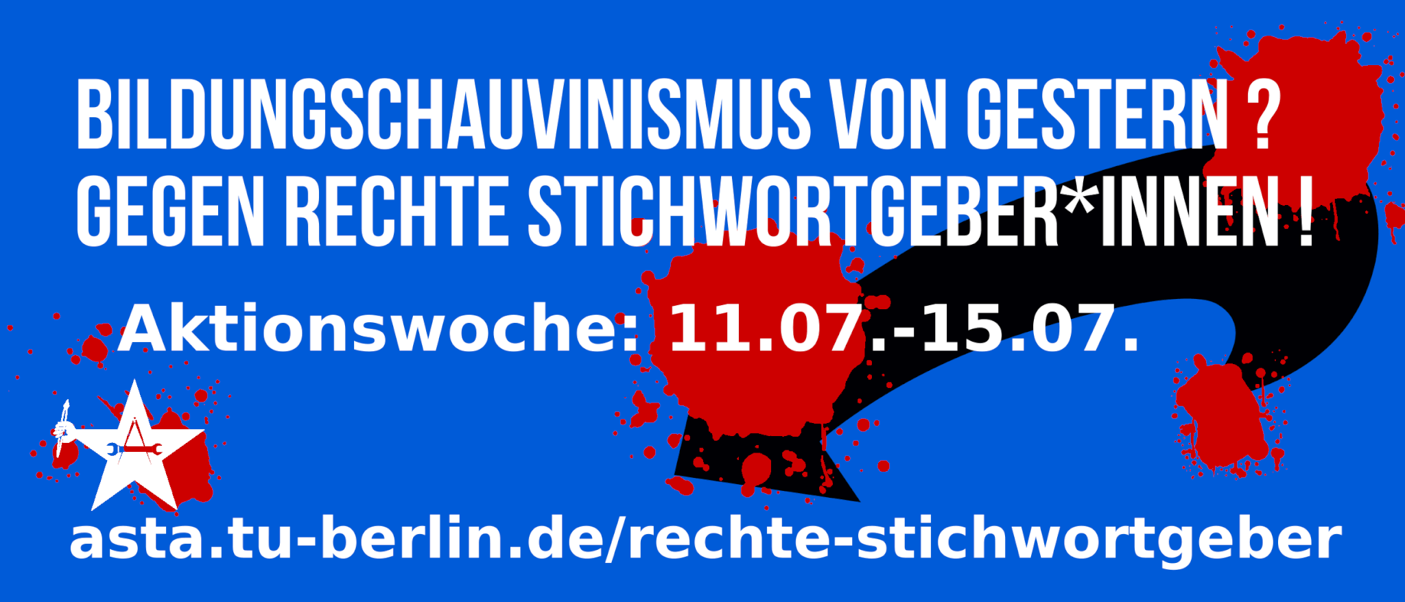 Bildung ist ein wichtiges Kampffeld für rechte und ultrakonservative Akteure wie der AfD. Neben der Ablehnung vermeintlich neuer Bildungskonzepte, wie etwa Gesamtschulen und dem Beharren auf dem ständischen dreigliedrigen Schulsystem, sind fortschrittliche Errungenschaften an den Hochschulen ein zentrales Angriffsziel. Demokratische Prinzipien, wie die Mitbestimmung von Studierenden bei Hochschulangelegenheiten (StuPa, Kuratorium, etc.) und der studentische Personalrat sollen abgeschafft werden. Studienplätze soll es nur noch für eine kleine ausgewählte Elite geben. Kritische Lehrstühle und Studiengänge sollen keine Finanzierung mehr bekommen. Universitäten, wie die TU Berlin sich aus historischen Gründen zu rein ziviler Forschung verpflichtet haben, sollen wieder Rüstungsforschung betreiben. Wir möchten an Hand des Bildungspolitischen Programms der AfD, diese Aspekte näher beleuchten.