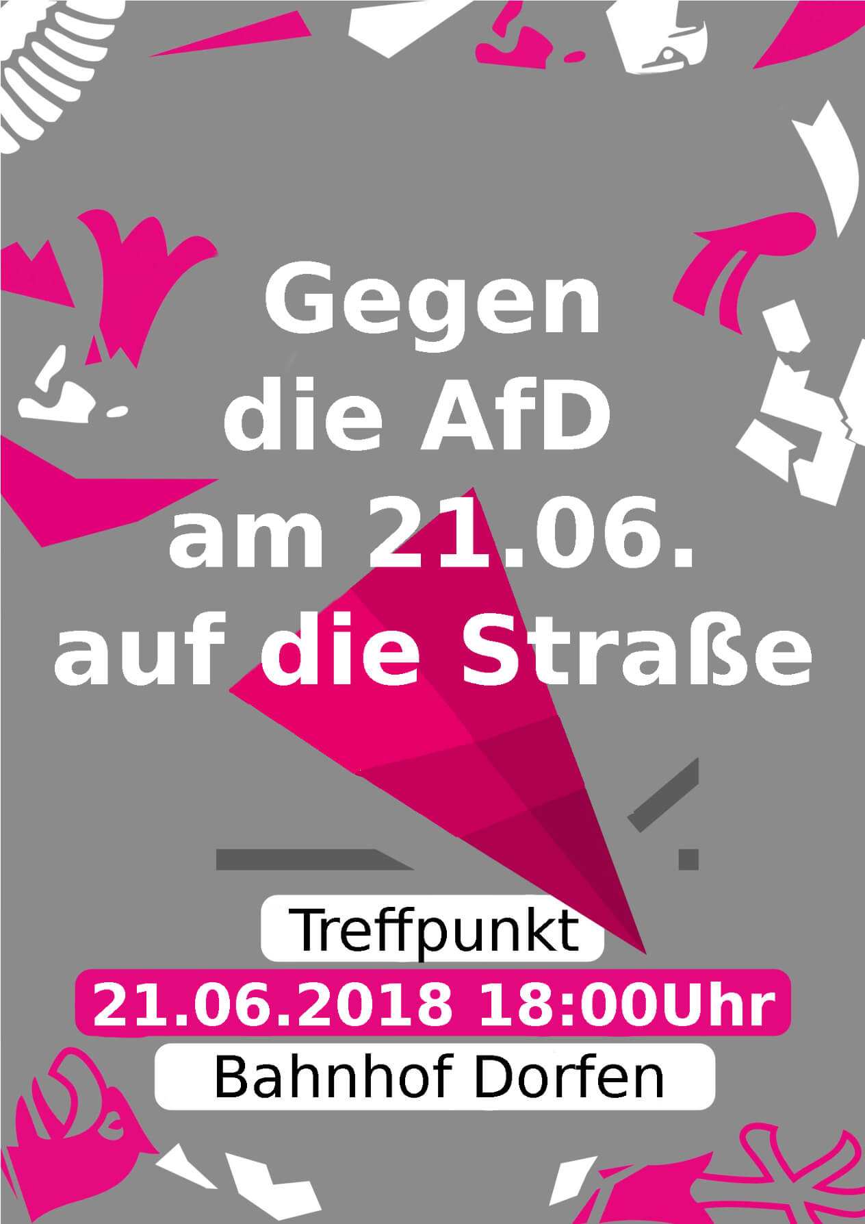 Rassistisch, homophob, sexistisch… kurz menschenverachtend – all das beschreibt die AfD. Nicht erst nach dem „Summer of Migration“ beginnt der Rechtsruck in Deutschland. Auch davor gab es bereits reaktionäre Bestrebungen der Regierenden. Allen voran in Bayern. Seit dem „Aufstieg“ der AfD hat sich daran kaum etwas geändert. Den größten Unterschied macht die CSU als neuer Laufbursche der AfD, die fröhlich mit Stichwörtern für eine Ausweitung der staatlichen Befugnisse, Abbau von Sozialleistungen und anderen reaktionären Ideen um sich wirft. Auch vor Dorfen macht dieser Prozess nicht halt. Trotz breitem zivilgesellschaftlichem Protest bei der letzten AfD-Veranstaltung wollen wir diesmal auch die Inhalte der radikalen Linken auf die Straße bringen und zeigen, dass die AfD hier keine Zukunft hat.