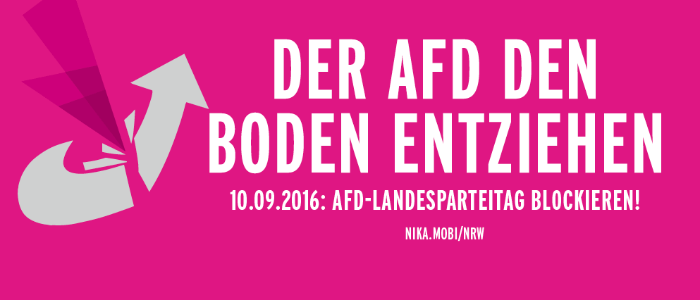 Am 10. September findet in Werl, bei Soest, erneut ein AfD-Landesparteitag statt, bei dem die Partei ihre Wahllisten für die kommende Landtagswahl aufstellen will. Als antifaschistische und antirassistische Gruppen, die sich an der Kampagne Nationalismus ist keine Alternative beteiligen, rufen wir dazu auf, sich am 10.09. an Blockaden in Werl zu beteiligen.